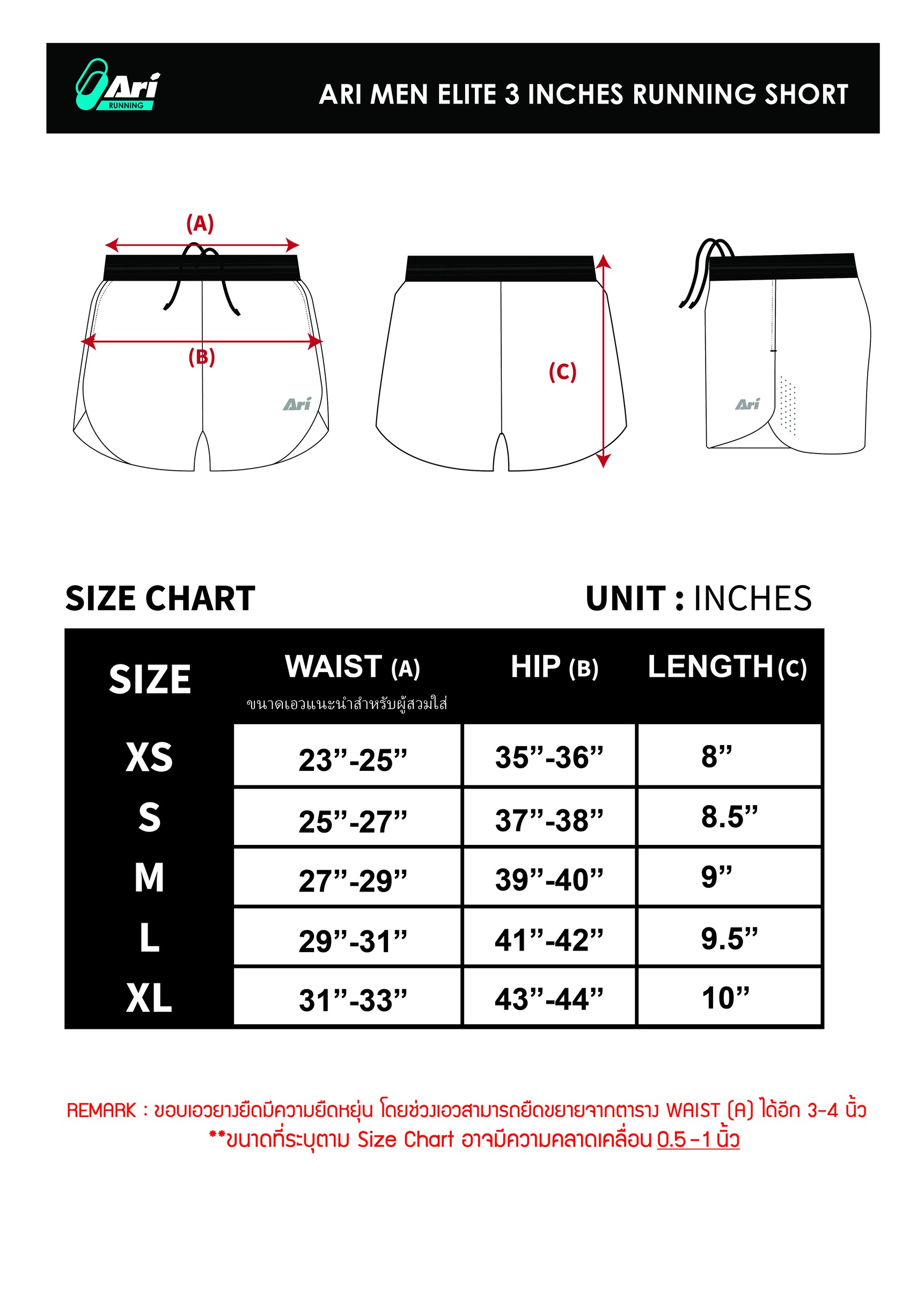ARI MEN ELITE 3 INCHES RUNNING SHORT - S - BLACK/BLACK/SILVER   + ฿1,490.00